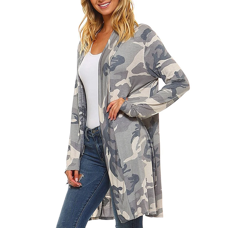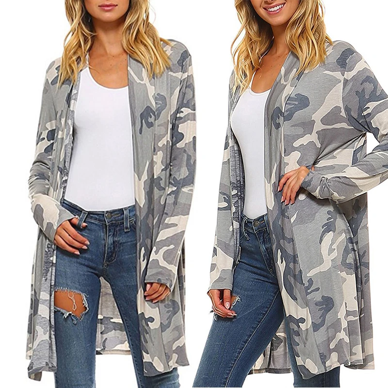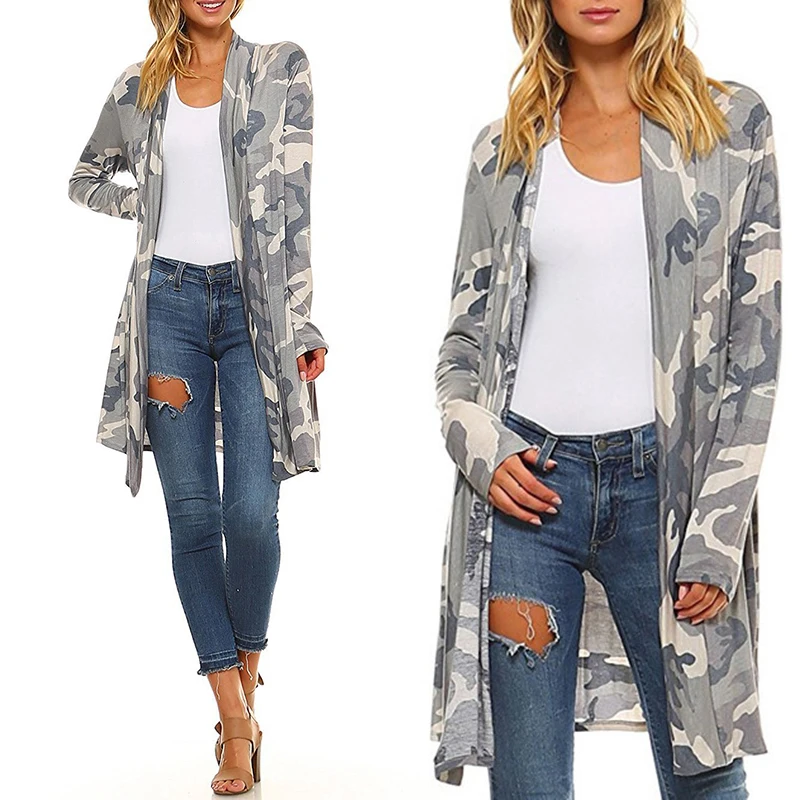 *Описание товара: Новый женский модный Повседневный сексуальный женский свободный Камуфляжный Кардиган с длинным рукавом