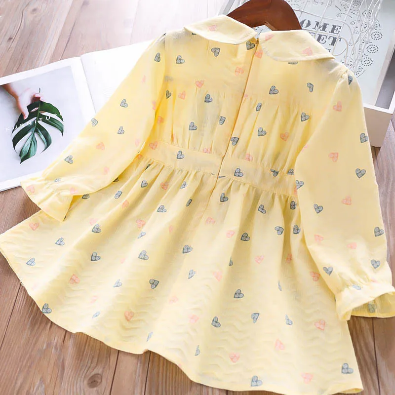 Платье для девочек, платье для девочек, школьная одежда белого, розового, желтого цветов с принтом сердечек, одежда для девочек с длинным рукавом, детская одежда, бутики на осень | ||||