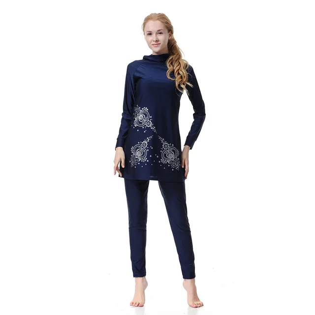 Мусульманские купальники для женщин, Burkini, Мусульманский купальник размера плюс, топы с длинными рукавами, штаны, комплект из двух предметов, одежда, покрытая муслимой