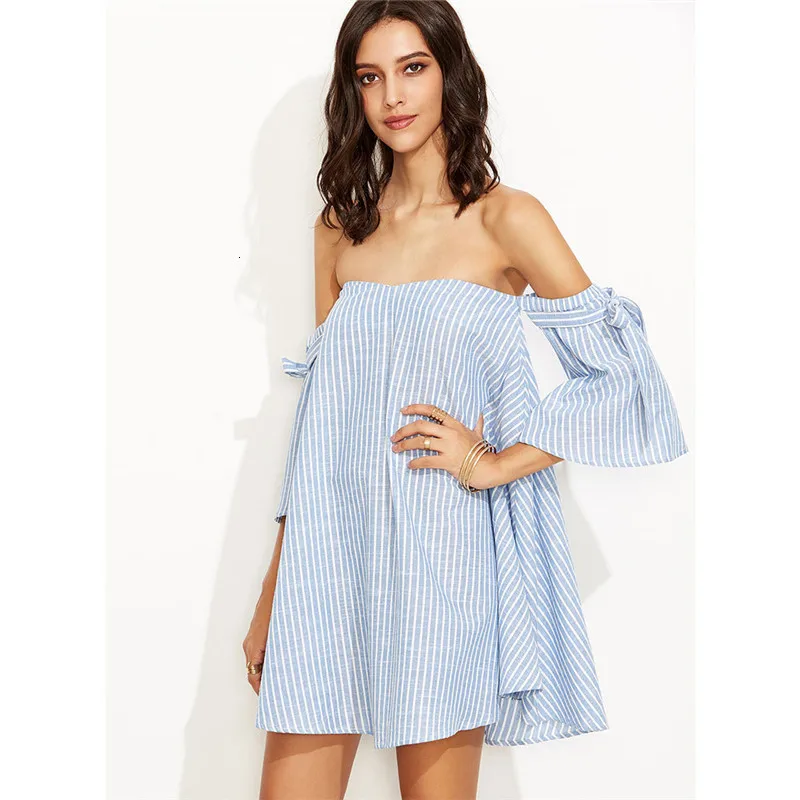 Женское сексуальное платье в полоску без бретелек с воротником и рукавами-бабочками, свободное платье большого размера, женское летнее модное мини-платье, Лидер продаж