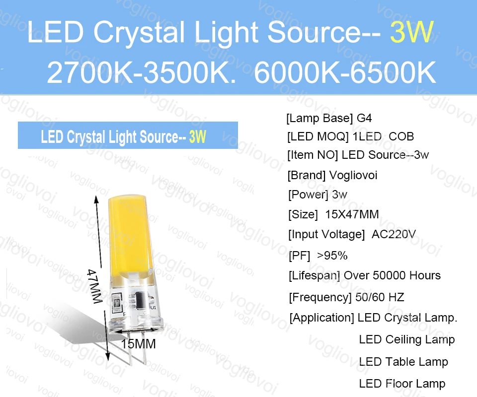 Vogliovoi светодиодный G4 G9 Лампа 2,5 Вт 3 Вт AC/DC 12 В 220 В COB силиконовый 270 угол заменить галогенный прожектор люстра