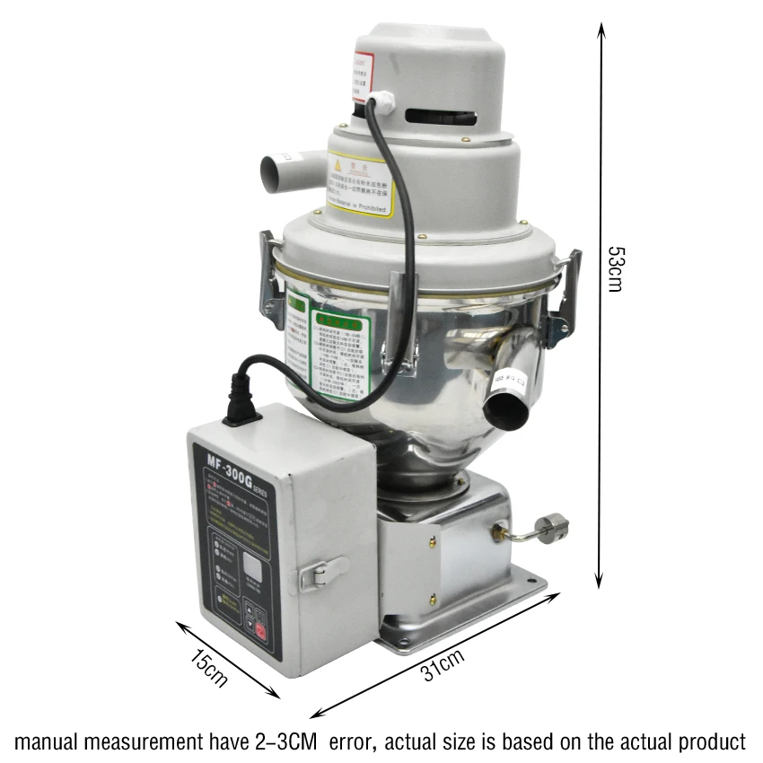 Название продукта: присоскаНомер модели: MF-300GНапряжение: 220 ВМощность: 1200 ВтМотор: карбоновая щетка медная проволока моторМатериал воронки: нержавеющая стальВместимость бункера: 7.5лРассасывающийся диаметр частиц: 5 ммПодъем: 4 мРазмер упаковки: 38*38*58 смВес: 15 кг Особенности:Применимость: гранулы сырья, рапс, рис и другие гранулы,Но не измельченные материалы, переработанные материалы и т. Д. Посылка:1 * всасывающий питатель + 4 * Нержавеющая сталь всасывающий замок +1 * Экологически чистая прокладка из силикагеля +1 * пылезащитный мешок + 1 * всасывающий шланг + 1 * всасывающий пистолет из нержавеющей сталиИзображение: