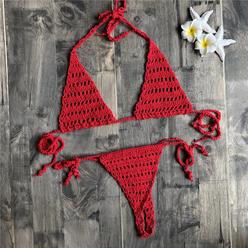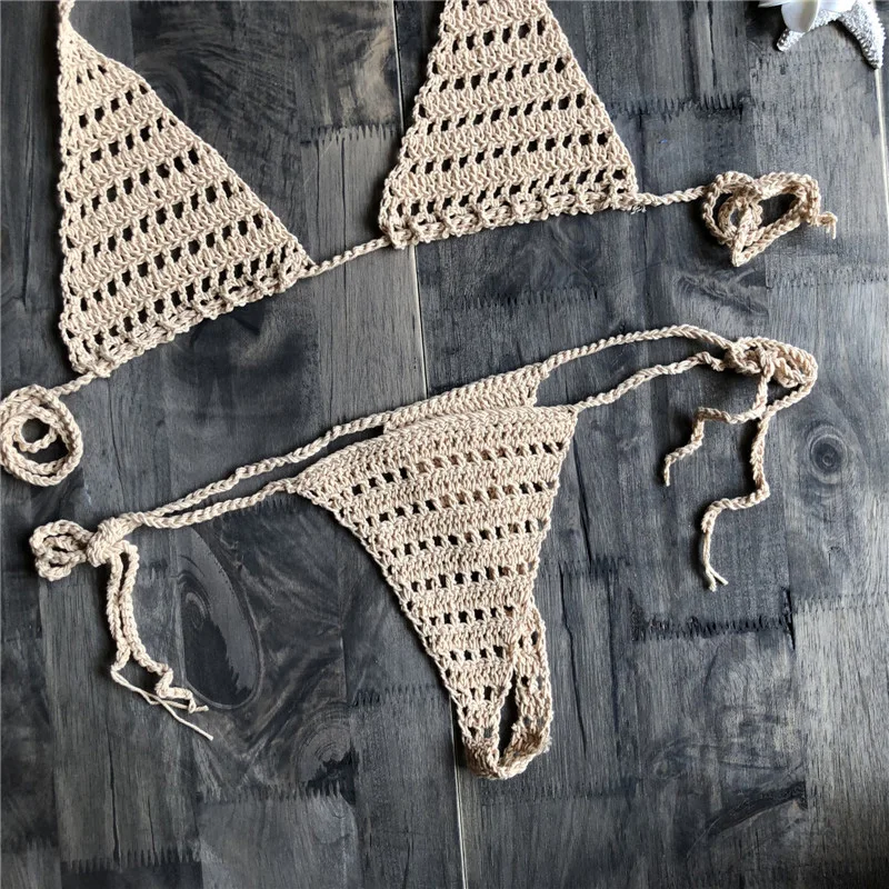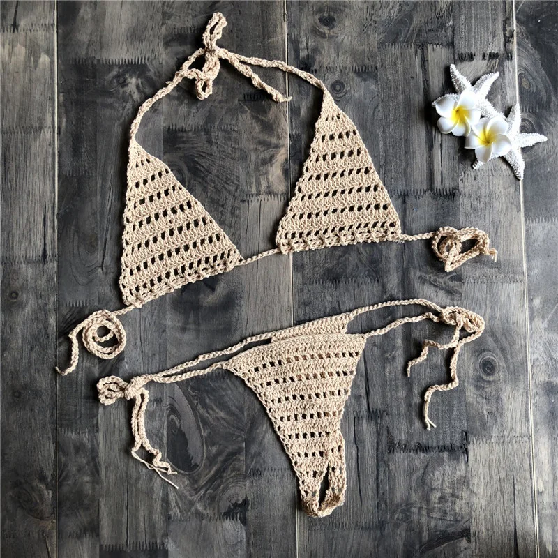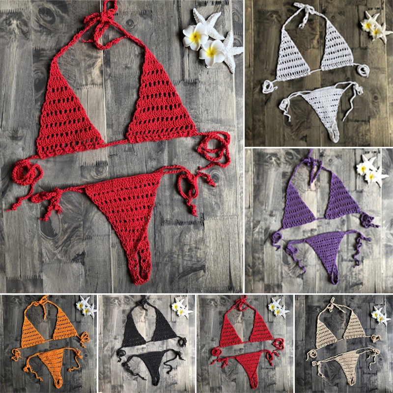 * Описание товара:Женское сексуальное женское белье Бикини ажурный ручной вязки раздельный купальник набор