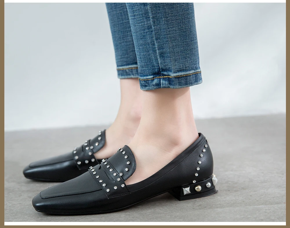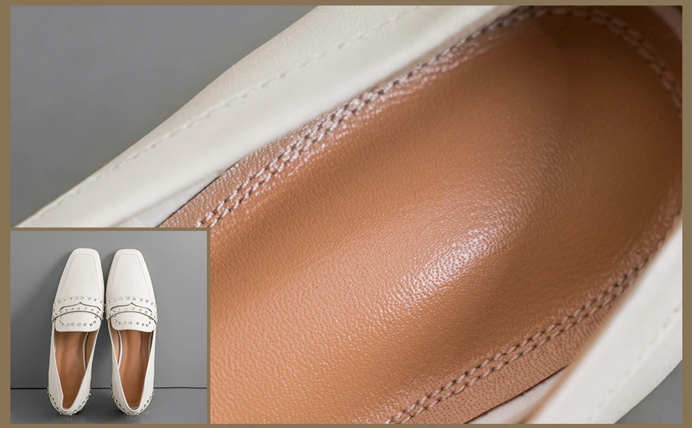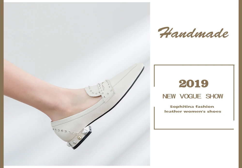 SOPHITINA Sheepskin Women Flats Square Toe Soft Breathable Special Design Elegant Shoes Rivet Fashion Handmade New Flats MO103
