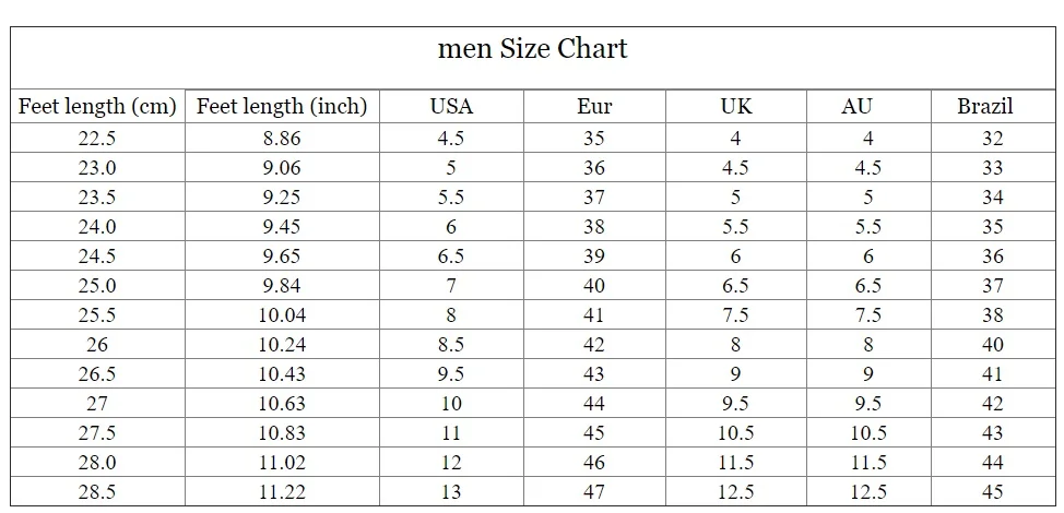 Notice: Please choose size according to foot length. Please allow 0.5 to 1cm difference because of manual measurement, Insole length=foot length+0.5cm.Different Countries have different us size reference,so our us size is just for choose, which is not true us size display on shoes.We will send you shoes by EU size on table.
