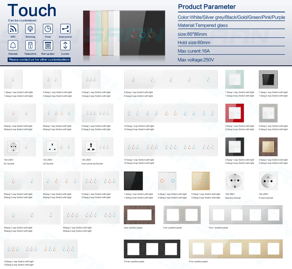 Размер панели: 86 мм * 86 мм роскошное Хрустальное закаленное стекло