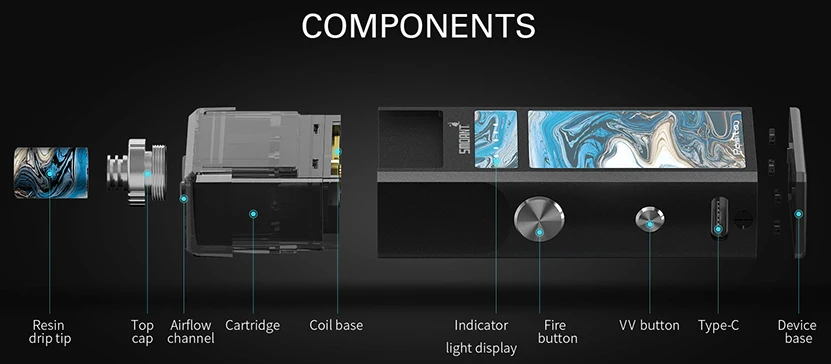 1. Три типа головок катушки в наличии: MTL 1.4ohm Ni-80 катушка, DTL 0.6ohm сетка катушка, RBA одна катушка 2. Инновационно восстановленная система pod (катушка RBA продается отдельно) 3. Регулируемые 5 уровней мощности (10 Вт 13 Вт 16 Вт 20 Вт 25 Вт) 4. Улучшенный муравей чип с несколькими защитой 5. Изготовлен из CPR и алюминиевого сплава 6. Верхняя Регулируемая система управления потоком воздуха 7. Легкая заправка сверху и предотвращение протекания 8. Емкость аккумулятора 1100 мАч 9. Емкость картриджа 3 мл 10. Сменный капельный наконечник из смолы 11. Быстрая зарядка типа C 12. Доступно в черном, красном, бронзовом, голубом, оружейном металле