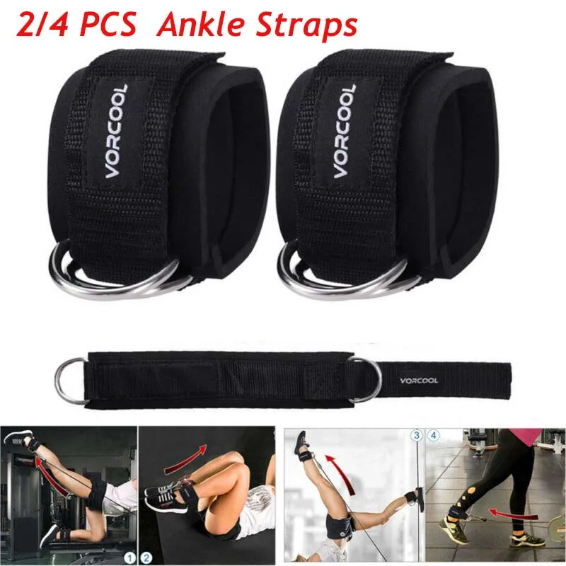 2 x VORCOOL Спортивные ремни на щиколотку, мягкие манжеты на щиколотку с D-образным кольцом для тренировок в тренажерном зале, тренажеры для упражнений на ногах с сумкой для переноски (черный)
