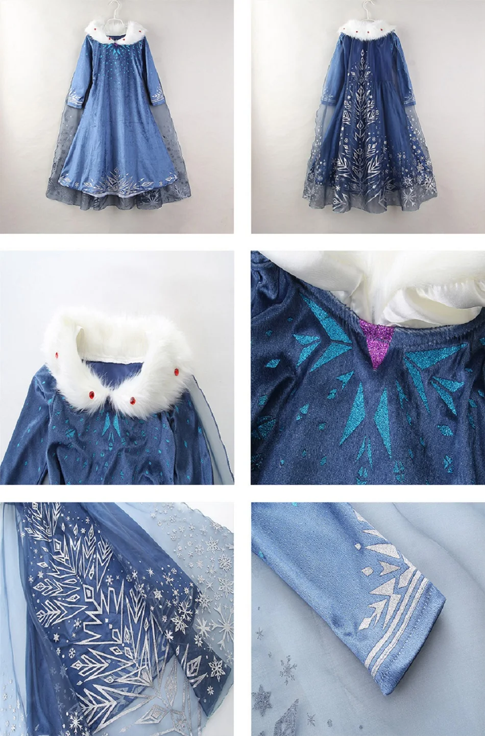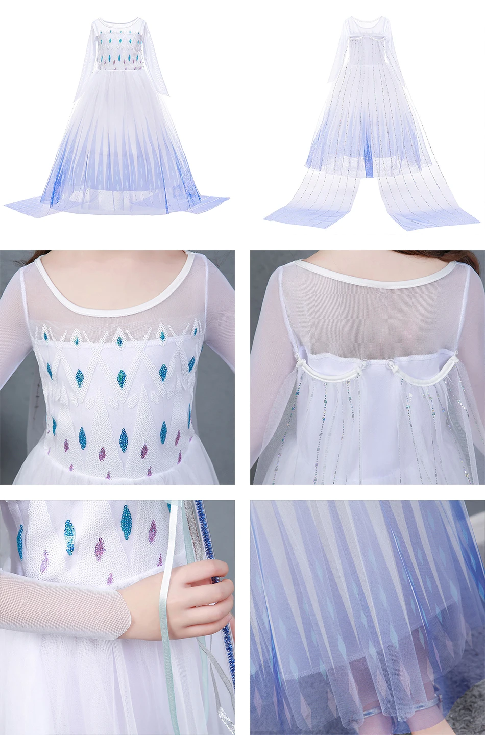 Название: платье Снежной Королевы для девочек; 2 платья Эльзы; Детский Рождественский костюм Эльзы для костюмированной вечеринки; Детская одежда на карнавал, День рождения; Вечерние аксессуары для париков с короной
