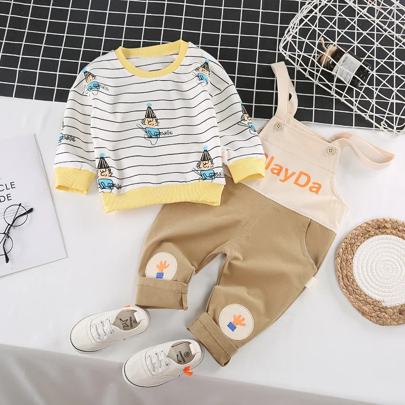 Новая детская модная одежда весенне-осенняя футболка для маленьких девочек и мальчиков, штаны 2 шт./компл., детская одежда для малышей спортивный костюм с рисунком для От 0 до 4 лет