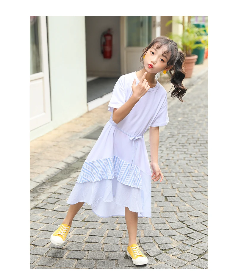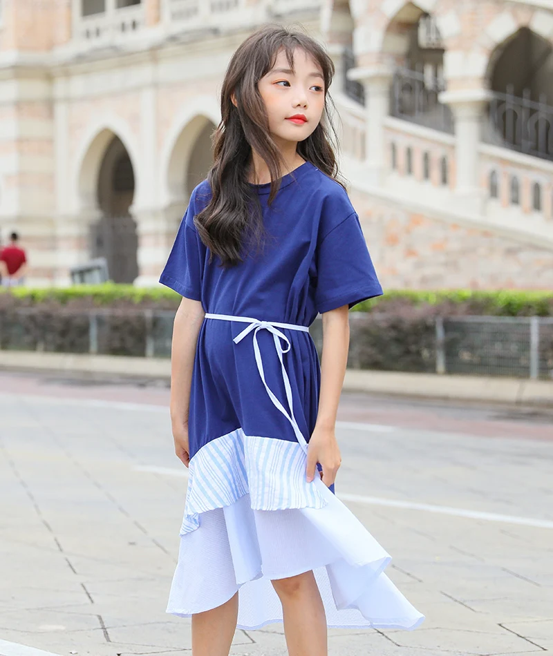 Striped Patchwork Big Girls Dresses New 2019 Summer Kids Toddler Dress Girl Princess White Blue Little Children Cotton Clothing 4 5 6 7 8 9 10 11 12 13 14 15 years little big kids dresses for girls 2019