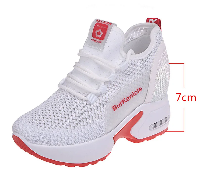 Женская обувь на платформе; Дышащая повседневная обувь; Дышащие кроссовки из сетчатого материала; Женские белые кроссовки на танкетке; Кроссовки на теннисном каблуке; 2020