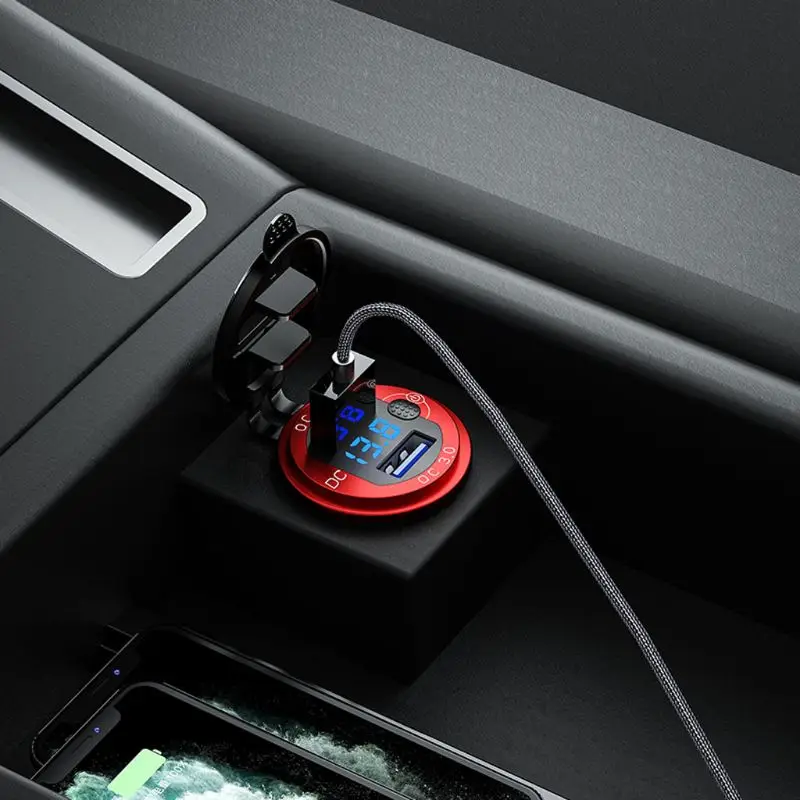 Встроенный usb-разъем для зарядного устройства светодиодный светодиодным дисплеем напряжения, который может вовремя отображать состояние напряжения автомобильного аккумулятора. Очень подходит для автомобилей, лодок, велосипедов, внедорожников, квадроциклов, автомобилей на колесах, кемперов, мотоциклов и т. д.