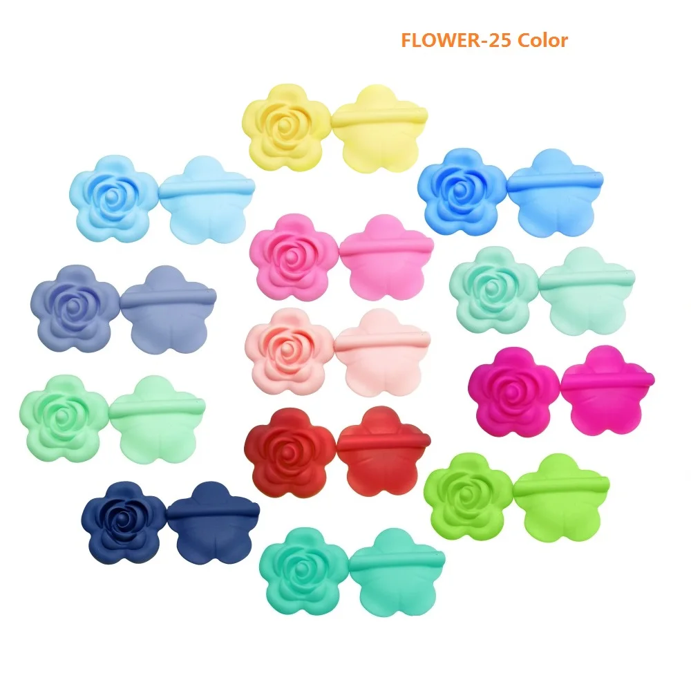 Joepada 10 шт./лот, бусины для прорезывания зубов с розовым цветком, BPA бесплатно для самостоятельного прорезывания зубов, ожерелье, аксессуары для ухода за полостью рта, игрушка для прорезывания зубов