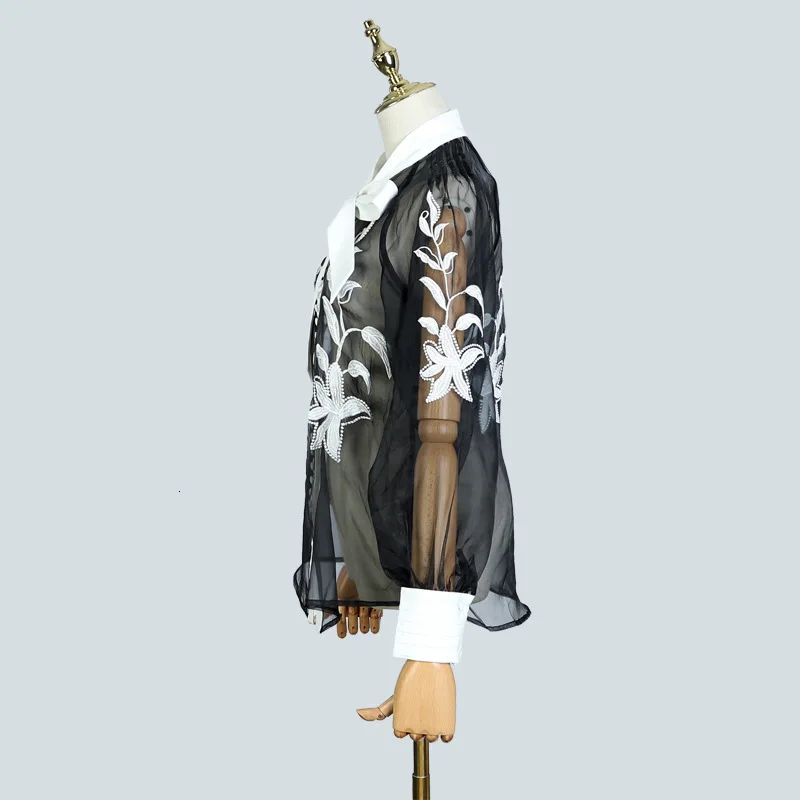 Женская блузка с рукавами-фонариками Vefadisa, черная оранжевая блузка с цветочным принтом