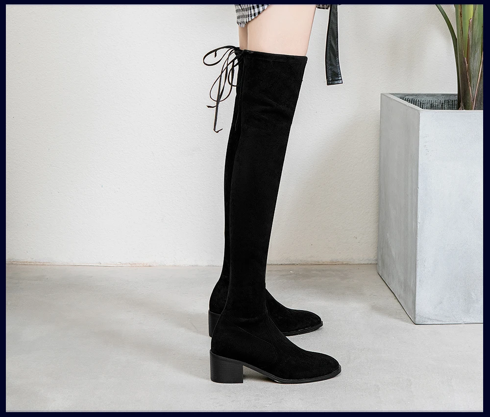 Дизайн выше колена не только сохраняет тепло, но и может лучше изменить форму ноги, очень красиво и благородно.
