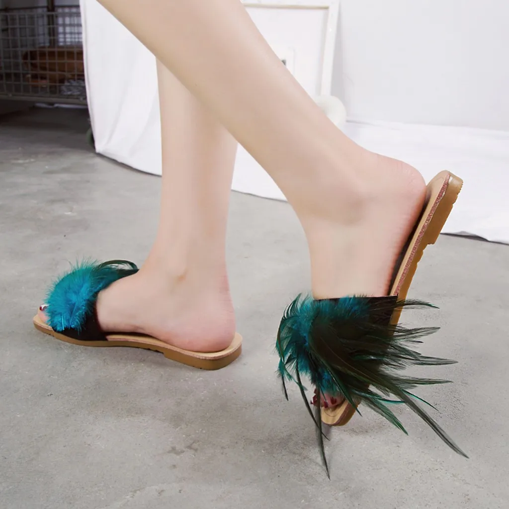 Женские летние повседневные модные элегантные сандалии с разноцветными перьями повседневная обувь с открытым носком Klapki Damskie Na Lato 50