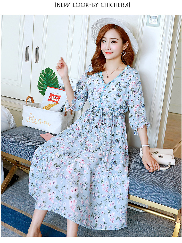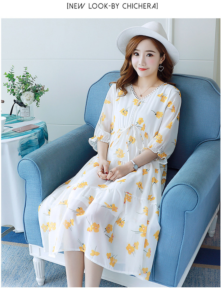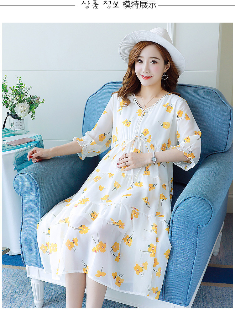 Летнее элегантное шифоновое платье для беременных с цветочным принтом, платья для беременных с коротким рукавом и v-образным вырезом для беременных