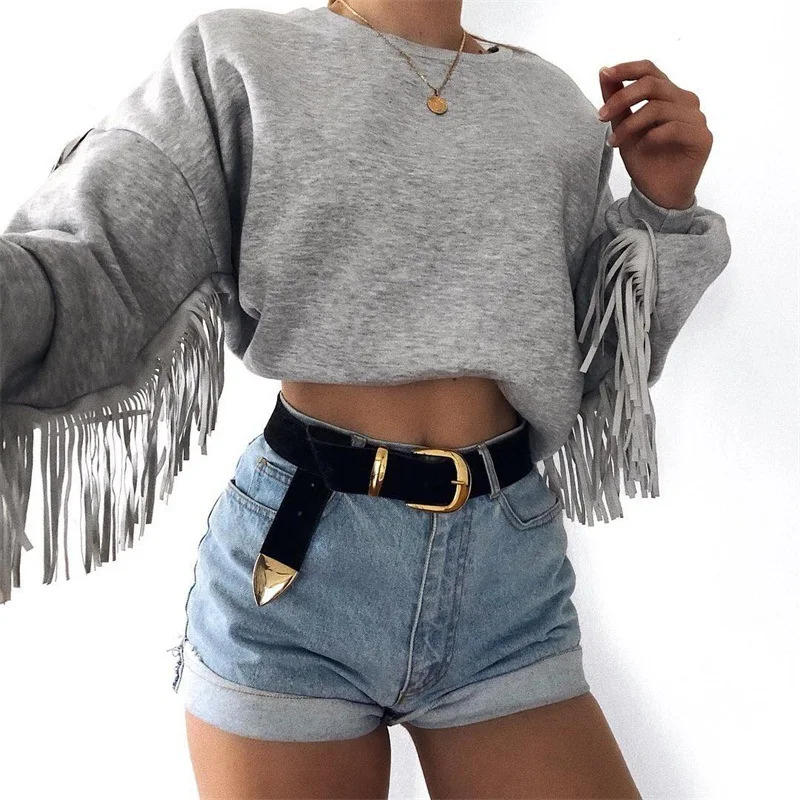 Женская Осенняя новая одежда, Однотонный свитер с кисточками, длинный рукав, круглый вырез, повседневный пуловер, свитер, модный, хит продаж, свитер