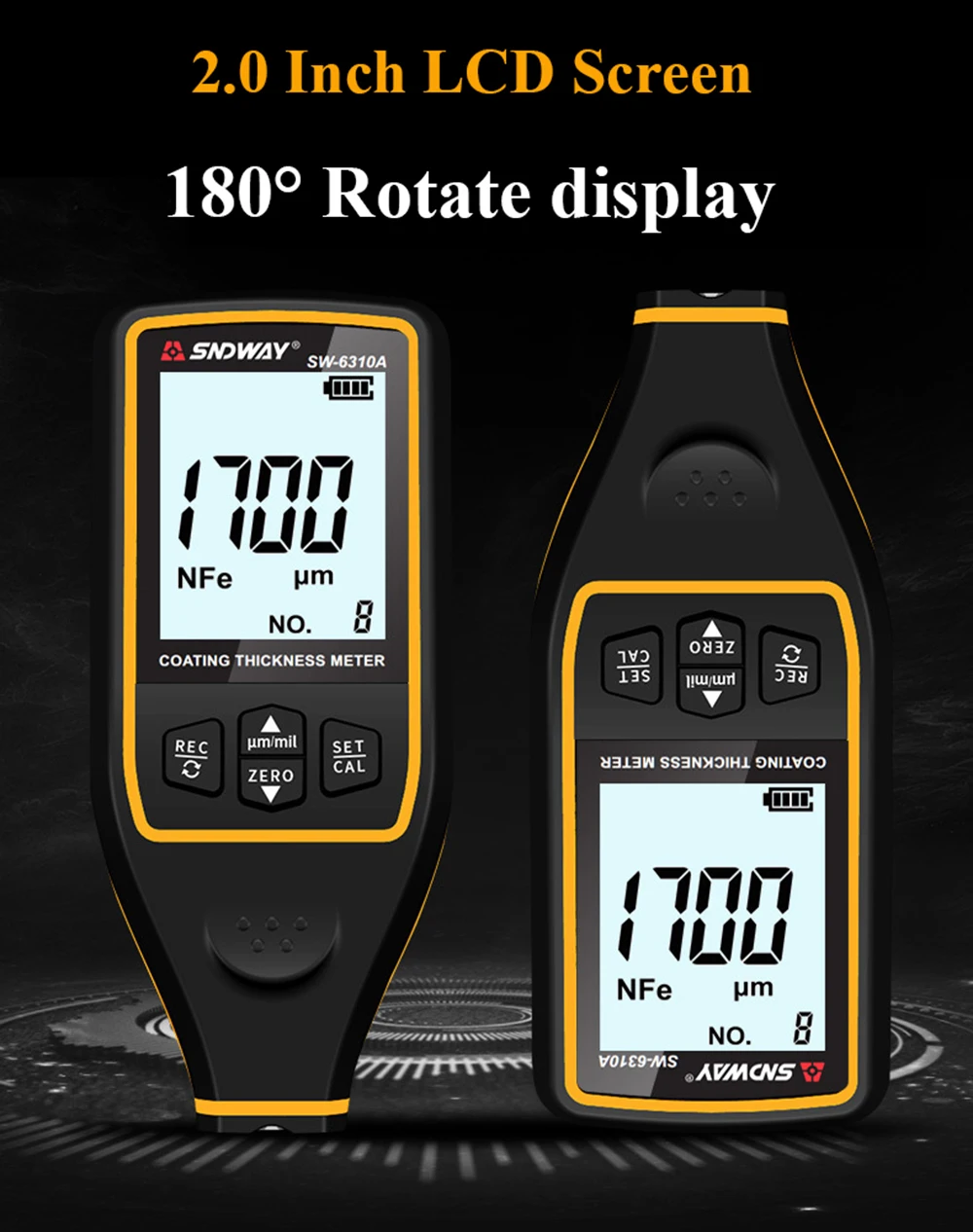 Sndway Coating Thickness Gauge Car Paint detector Refinishing Paint micrometer Automotive Coating test high-precise probe Meter