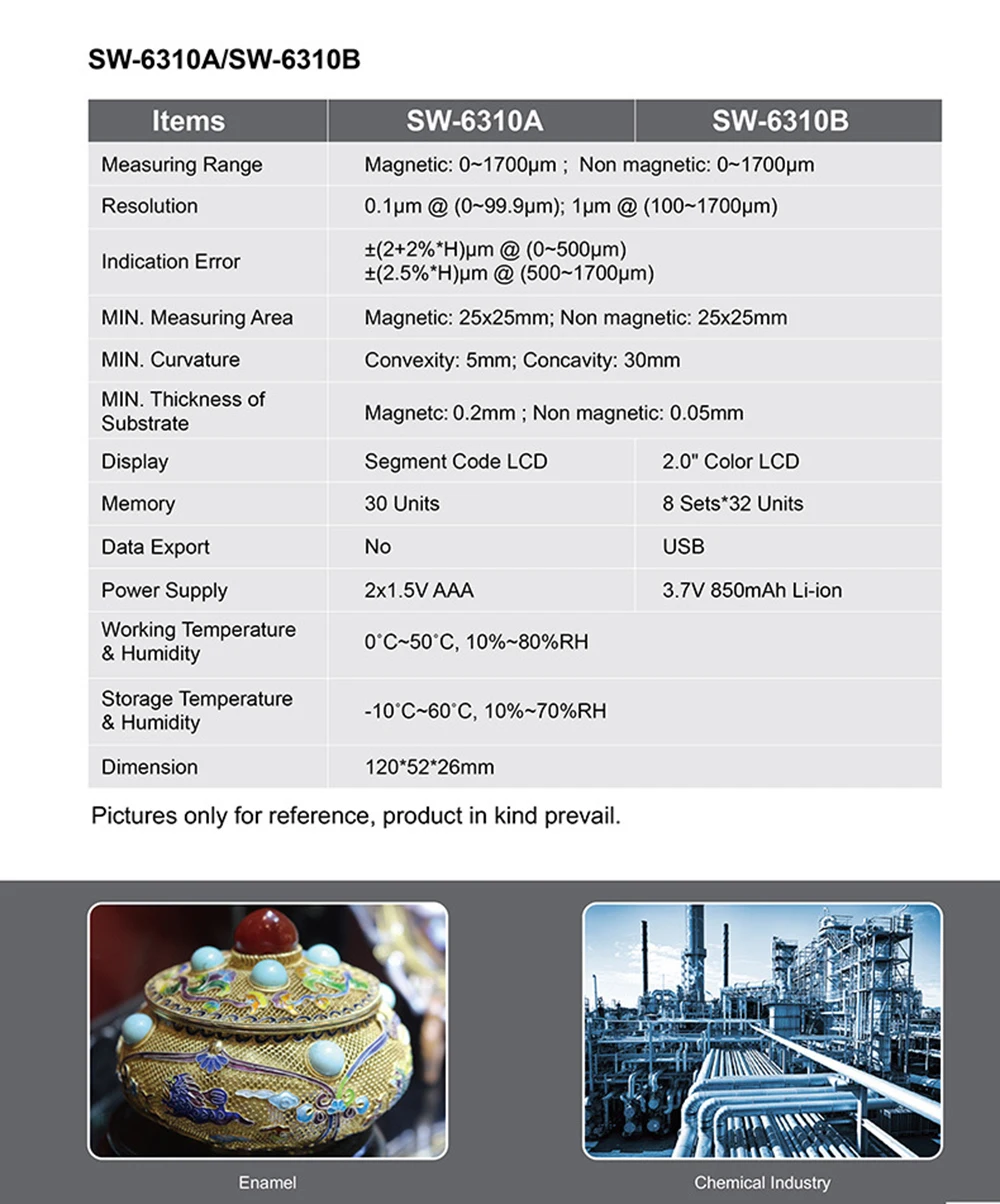 Measuring range: Magnetic material 0~1700µm; Non magnetic material 0~1700µm