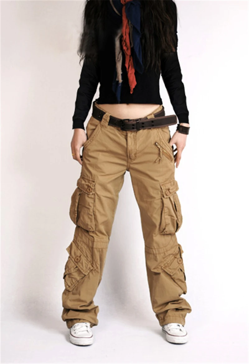 Уличные тактические брюки с несколькими карманами, женские прямые свободные повседневные брюки из промытого хлопка, износостойкие спортивные походные рабочие брюки