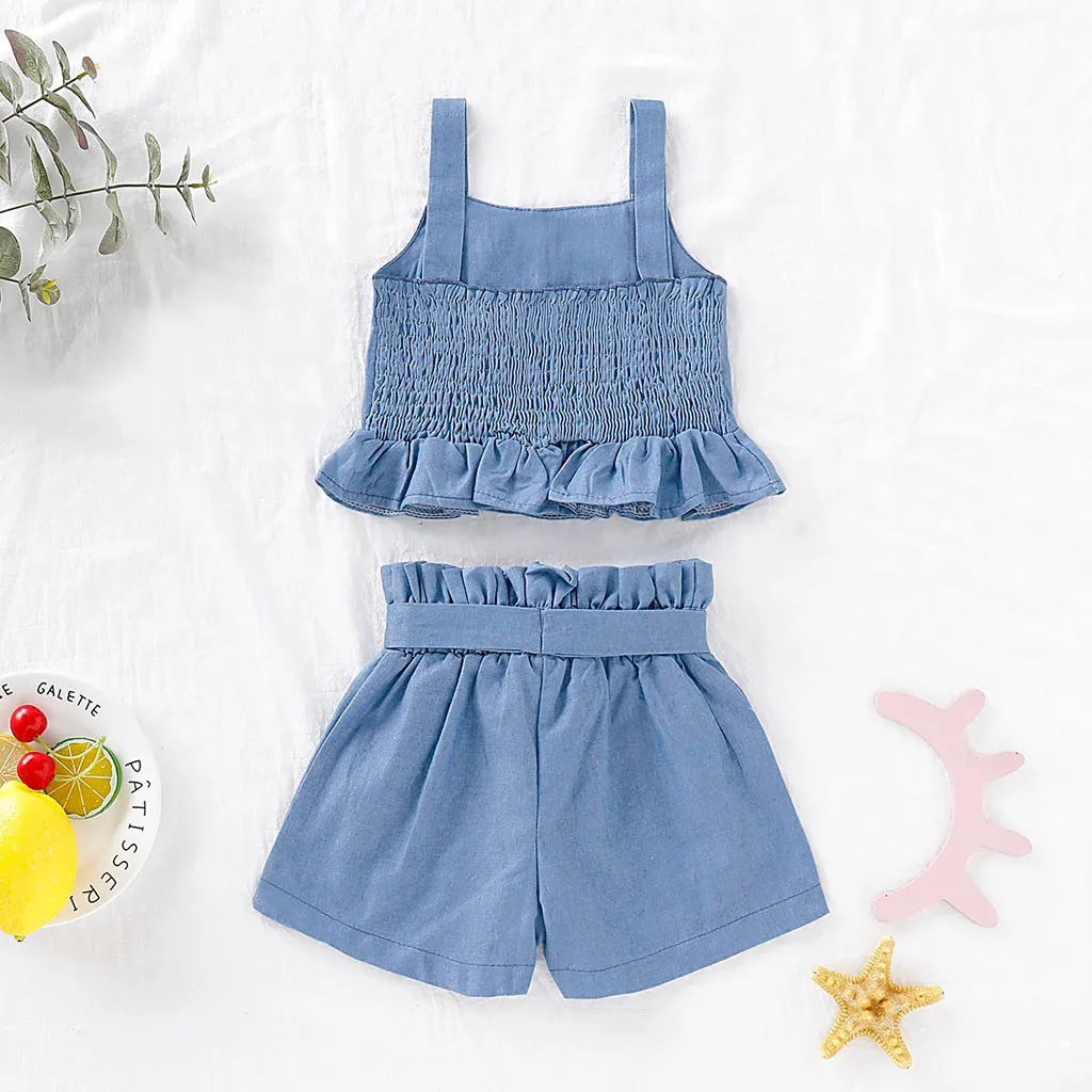 Жилет с оборкой для маленьких девочек, топы, однотонный комплект с шортами