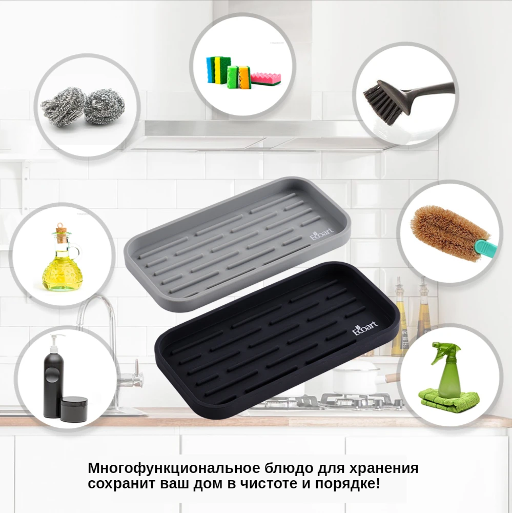 Продукт: Силиконовый лоток для хранения + чистящая щетка Ящик для хранения, Размеры: 24,51*12,50*1,70 см (9,65*4,92*0,67 дюймов) Щетка для очистки Размеры: 12,19*7,01*2,01 см (4,8*2,76*0,79 дюймов) Применение: Возьмите губки/мыло/дозатор мыла/полотенце и чашки на кухне или ванной Метод очистки: Мыть в посудомоечной машине или мыть вручную теплой мыльной водой.