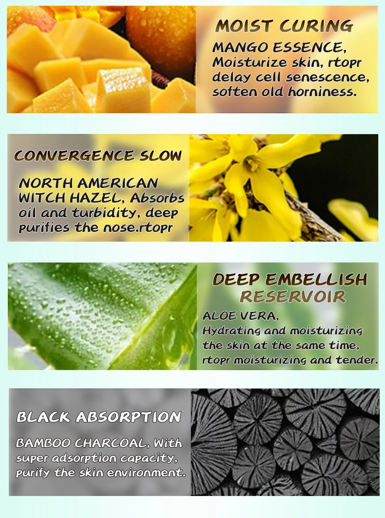 Содержит богатые питательные ингредиенты манго. Мягкая палочка принимает, смягчая отходы роговой одновременно, адсорбция пор черная головка, relievegreasy прожектор, затягивает поры и улучшает шероховатость. Делает кожу нежной и гладкой.