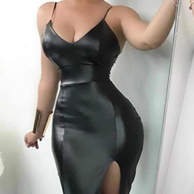 * Предмет ОписаниеN:Сексуальные; бретельки; спилок; полиуретановая кожа; бальные; вечерние; мини-платье