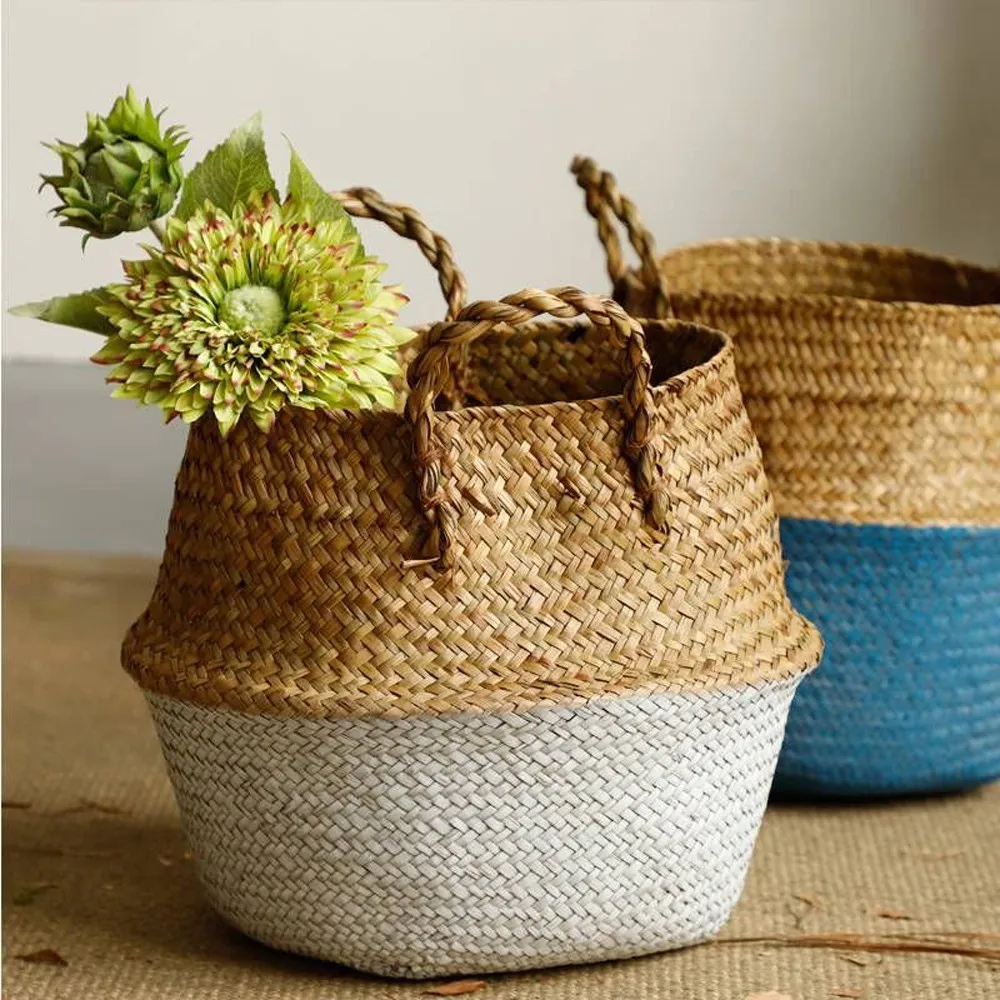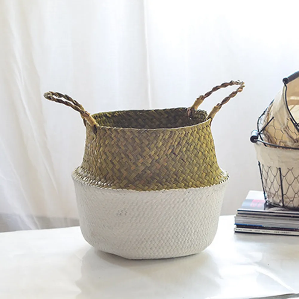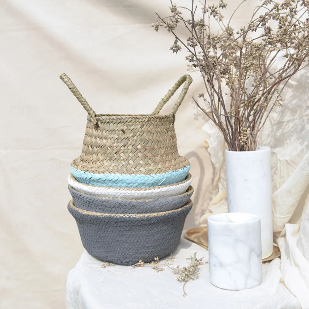 Плетеная корзина из водорослей, плетеная корзина, цветочный горшок, складная корзина, корзина для грязного хранения, украшение для дома