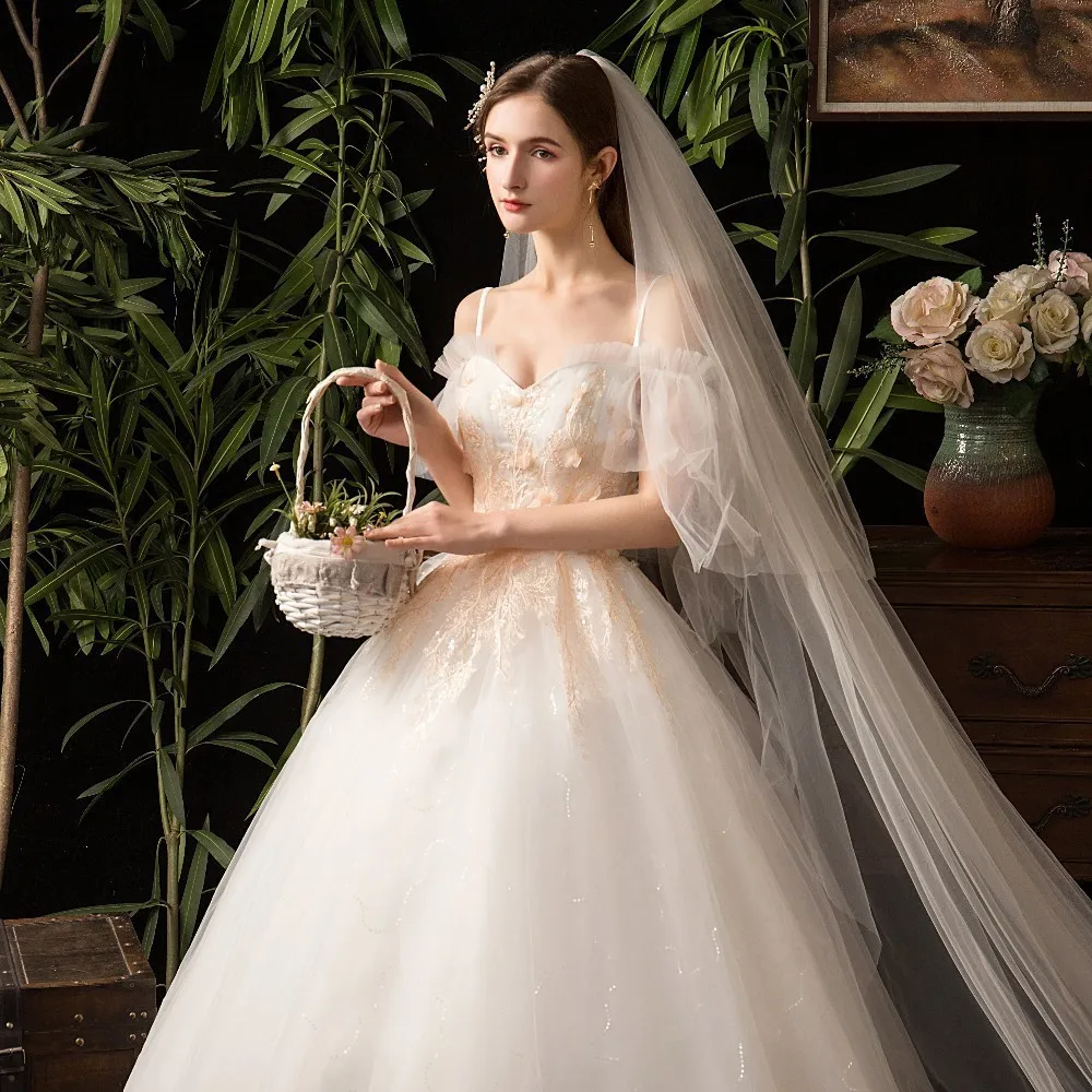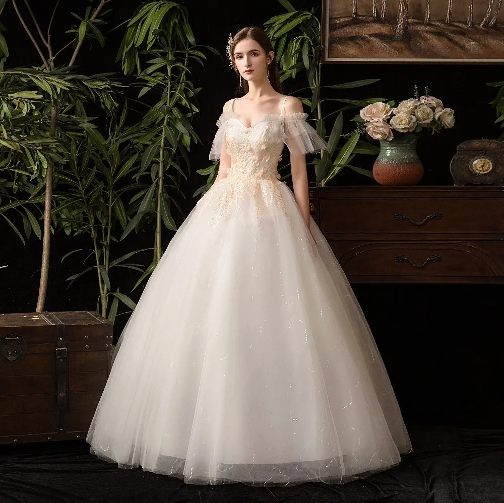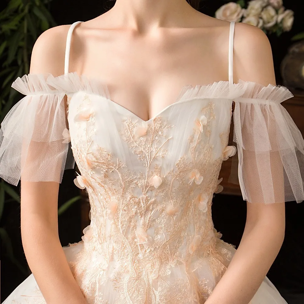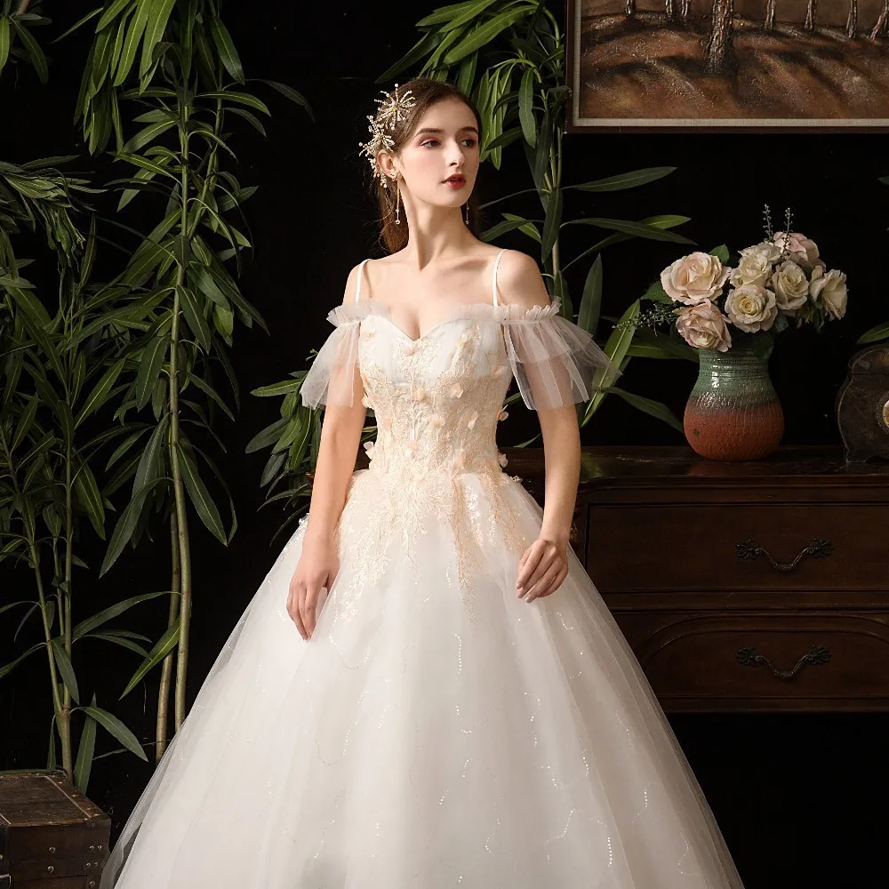 Бальное платье принцессы WUZHIYI свадебные платья 2021 с открытыми плечами украшенные