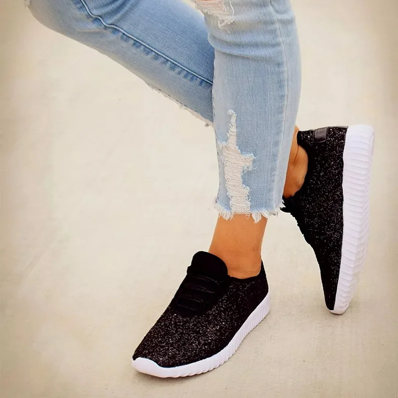 С блестящими блестками вокруг верхней части, стильный дизайн, Шнуровка закрытия. Модные дышащие кроссовки, легкий и дышащий верх держит ваши ноги стоя сухой и гибкой ходьбы.