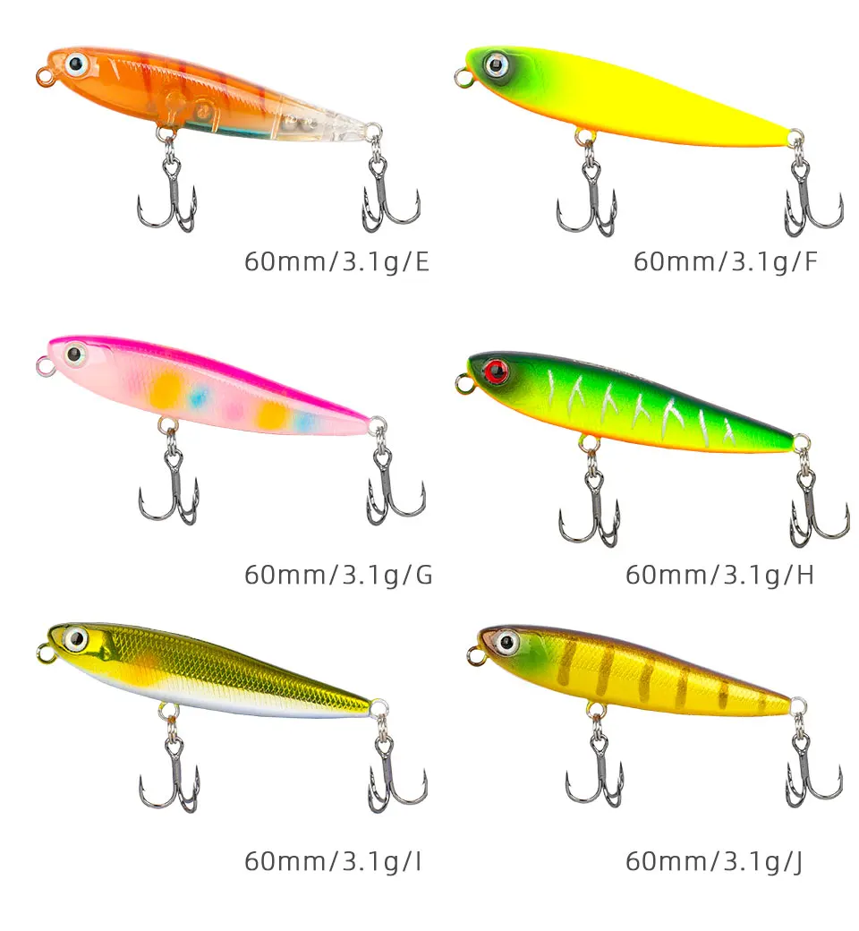 Характеристики продукта: Задняя система переноса веса увеличенное расстояние литья, Помимо летального сочетания действий и динамической акустики, карандаш DW64 позволяет любому рыболову без усилий выполнять идеальное действие для собак, которое сопровождается уникальной акустической погремушкой. Для того, чтобы привлечь внимание игровой рыбы, карандаш DW64 также оснащен четкими красными глазами, которые придают ему внешний вид поврежденной приманки. Информация о продукте: 1. Наименование: DW64 2. Вес: 3,1 г 3. Длина: 60 мм 4. Цвет: Доступно 10 цветов 5. Тип: плавающий карандаш 6. Глубина: верхняя вода 7. Крючки: прочные крючки * 2 8. Посылка: индивидуальная упаковка