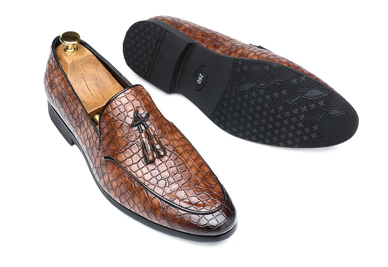 Title:OUDINIAO Men's Shoes Vintage Shoes Casual Large Sizes Tassel Mens Design Shoes For Men Pointed Toe Tassel Loafers Alligator
