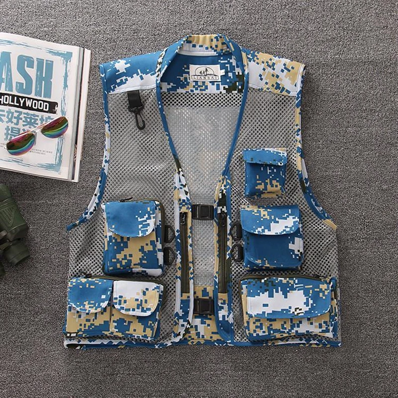 Наружный мужской Камуфляжный сетчатый жилет для рыбалки с несколькими карманами для фотосъемки