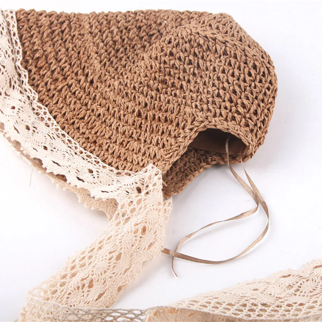 Summer Women Teen Lace Ribbons Breathable Hat Straw Hat Family Hat Cap