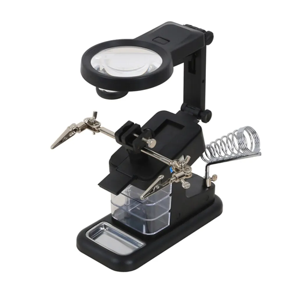 Это мульти-функциональное увеличительное стекло разработан специально для пайки или других ремонтных работ. С зажимами типа «крокодил» и регулируемым держателем вы можете расслабить уставшие руки и работать более эффективно, увеличивая количество предметов. С сильной функцией и хорошей производительностью, которая может быть использована во многих местах.