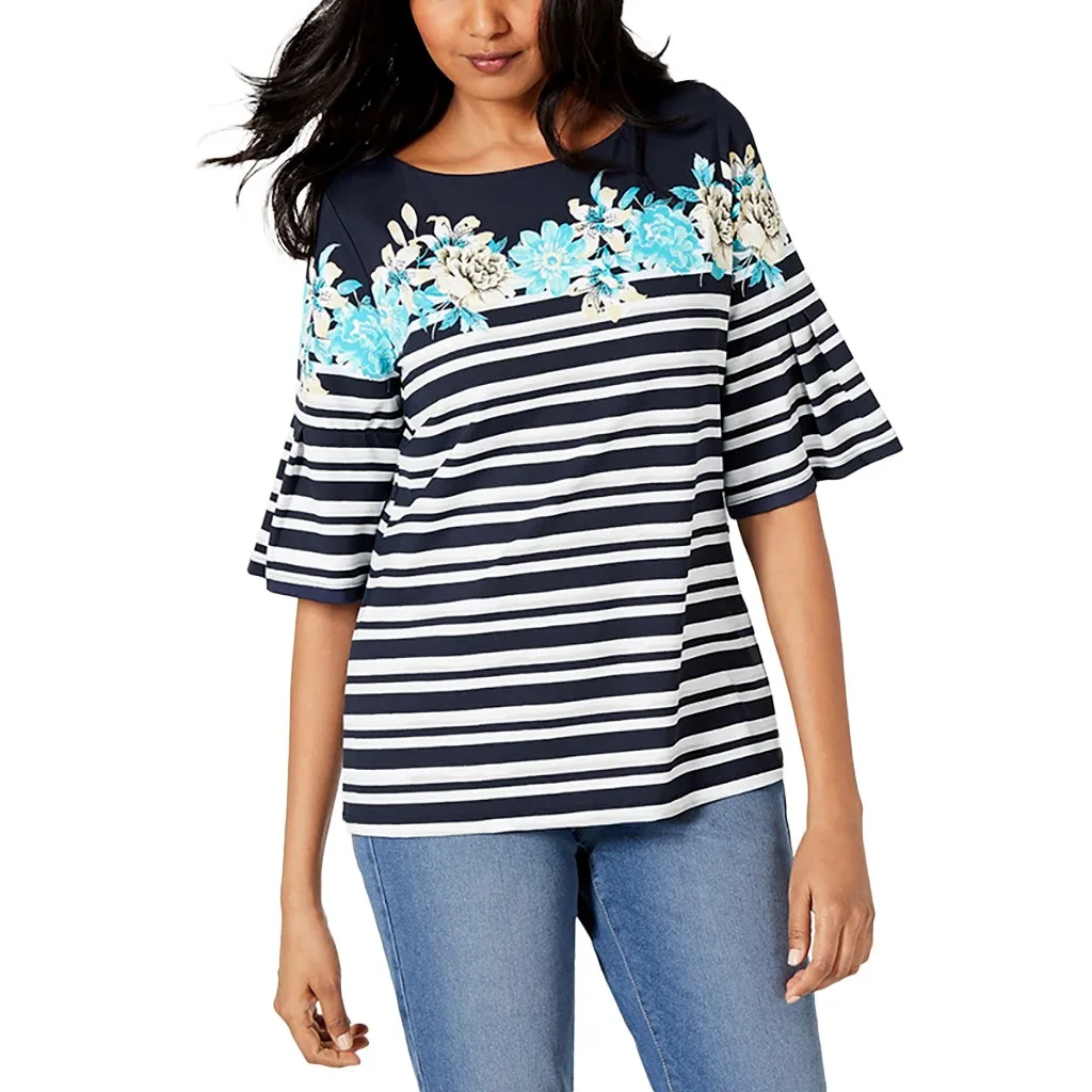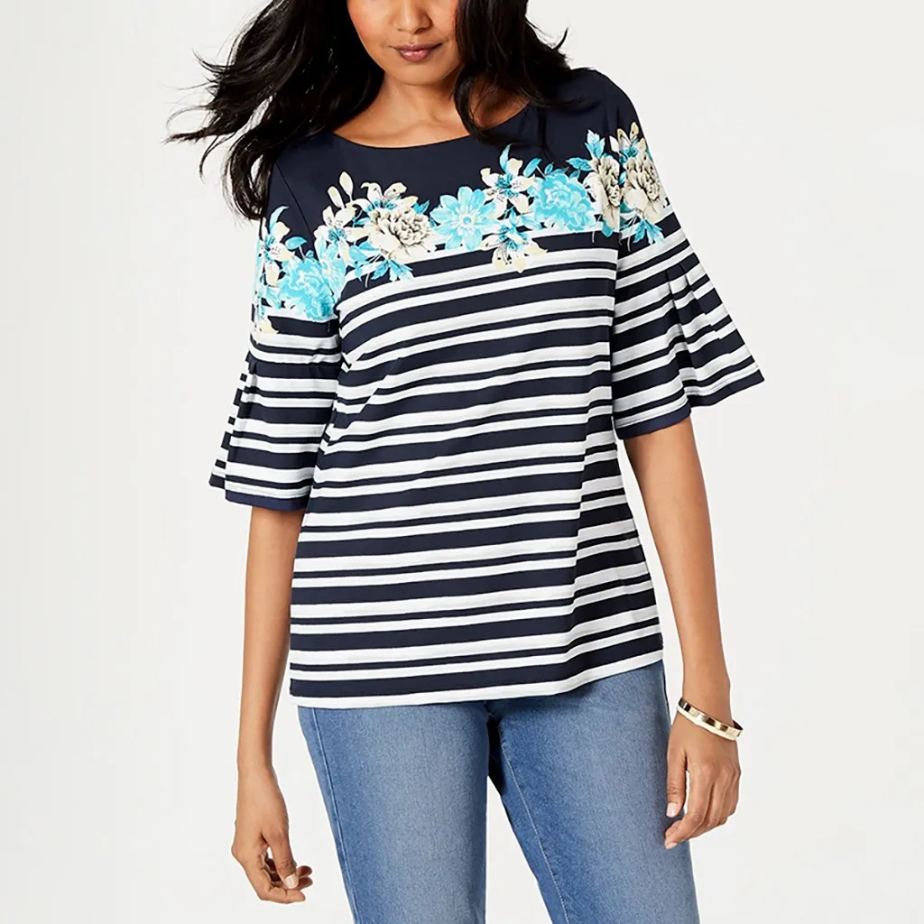 Женская Футболка для беременных с расклешенными рукавами и полосатым принтом для кормления грудью