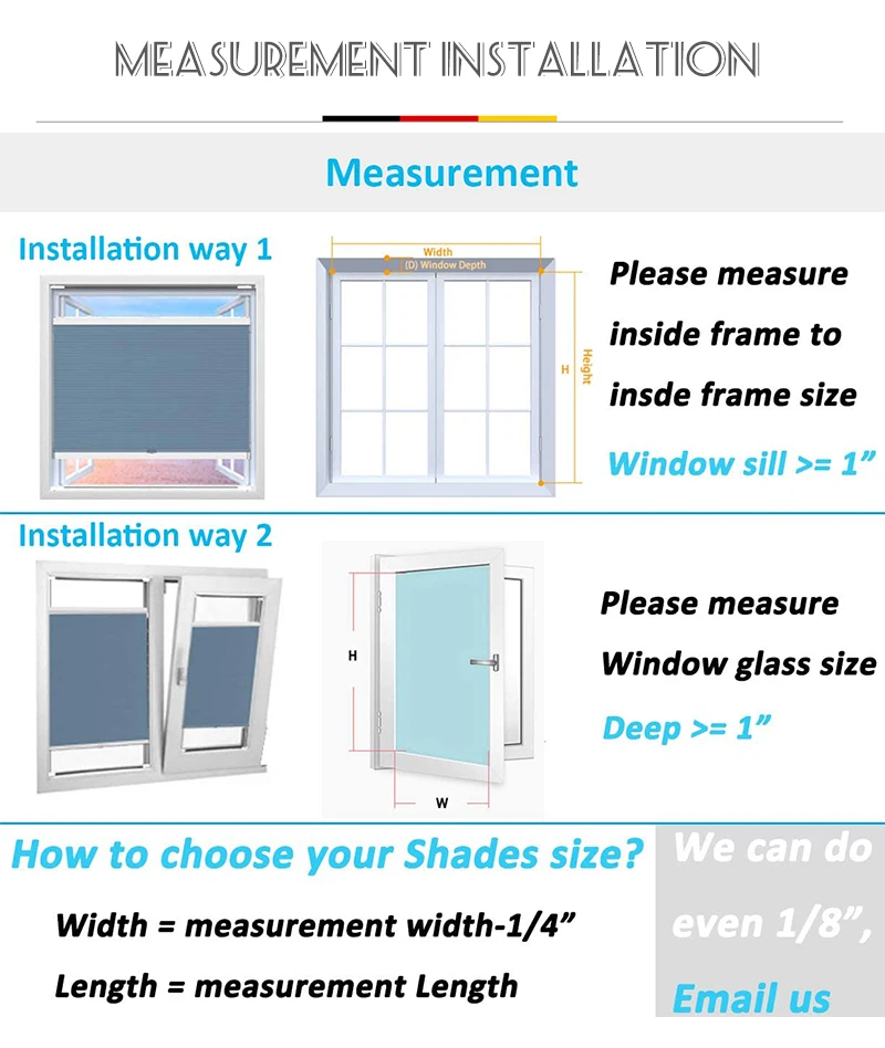 Минимальная глубина окна-1 ". Закажите на один размер меньше на 1/4 дюйма, чем ширина вашего измерения. Эти затемненные оттенки вырезаются по указанному Вами размеру после заказа.