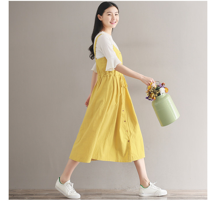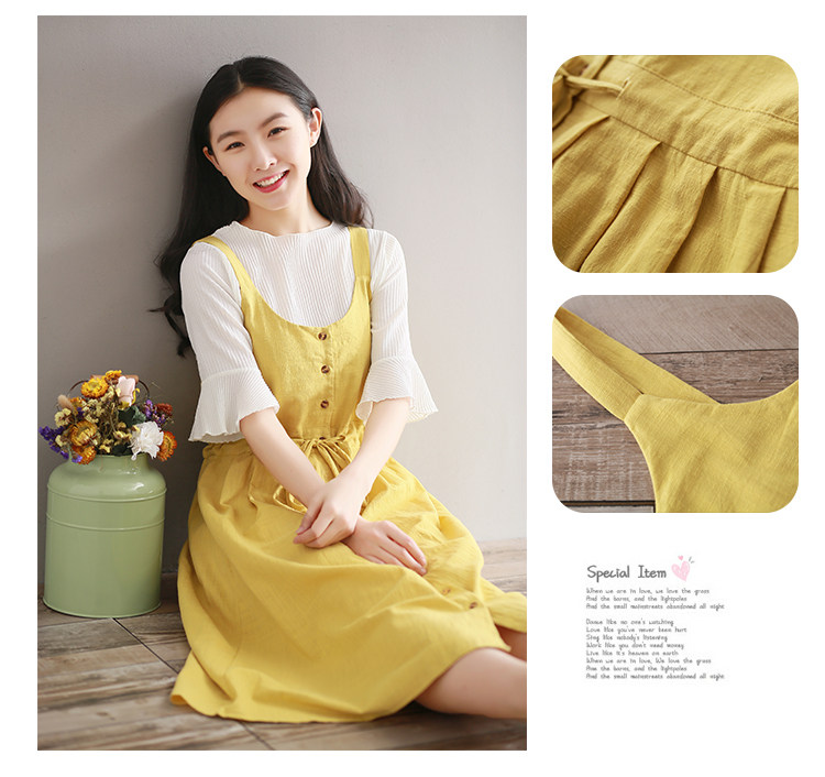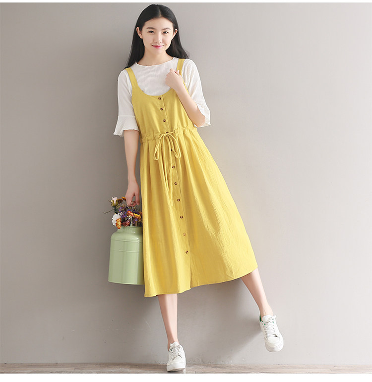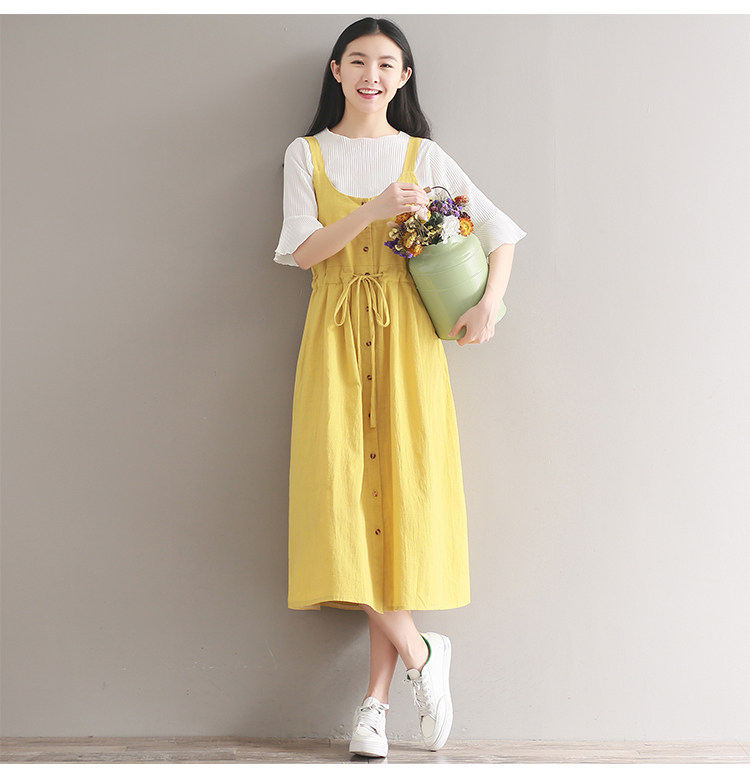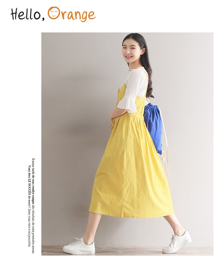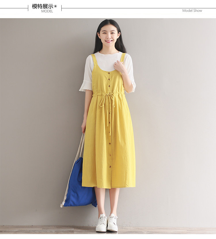 Летнее платье 2019 Новое Женское Платье на бретельках с завязками длинные хлопковые платья Mori Girl без рукавов желтый сарафан AE569