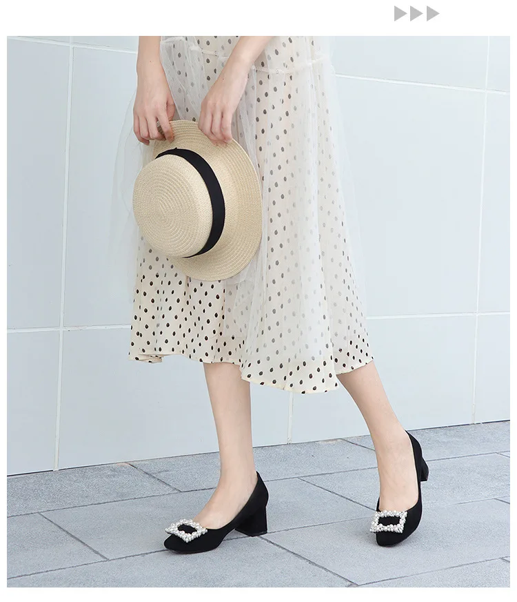 Высококачественная обувь из флока с квадратным носком и жемчугом; Элегантная обувь для вечеринки и свадьбы