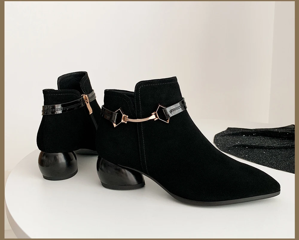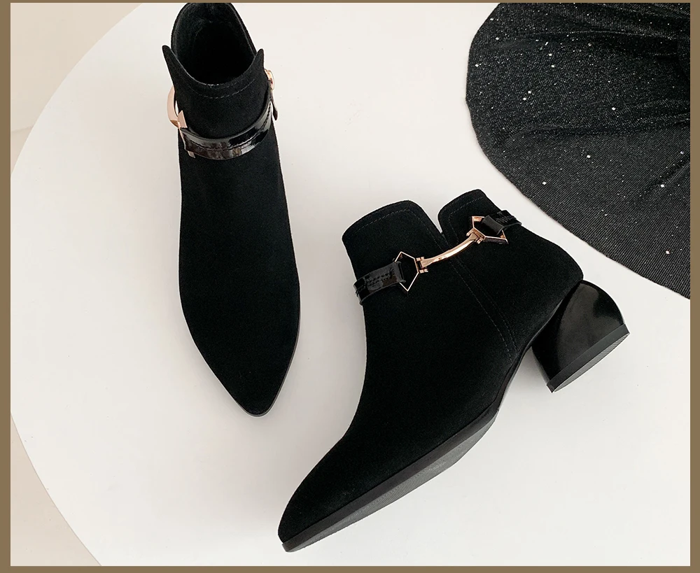 SOPHITINA Special Design Boots New Fashion Metal Decoration Comfortable Round Heel Sexy Pointed Toe Shoes Women's Boots MO257