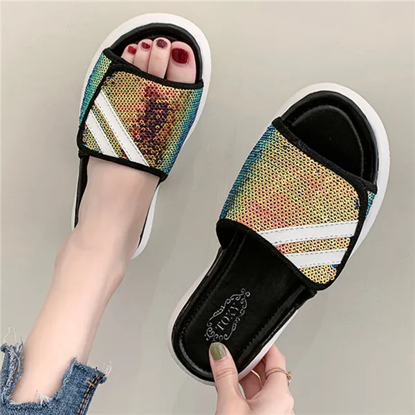 Популярные летние женские шлепанцы; Стразы; Блестящие шлепанцы на плоской подошве; Мягкие домашние Вьетнамки; Женская обувь с блестящими стразами; Пляжные сандалии