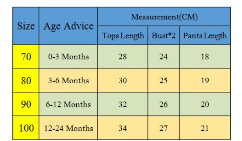 | Размер | Длина топа | Бюст * 2 | Шорты | Возраст |