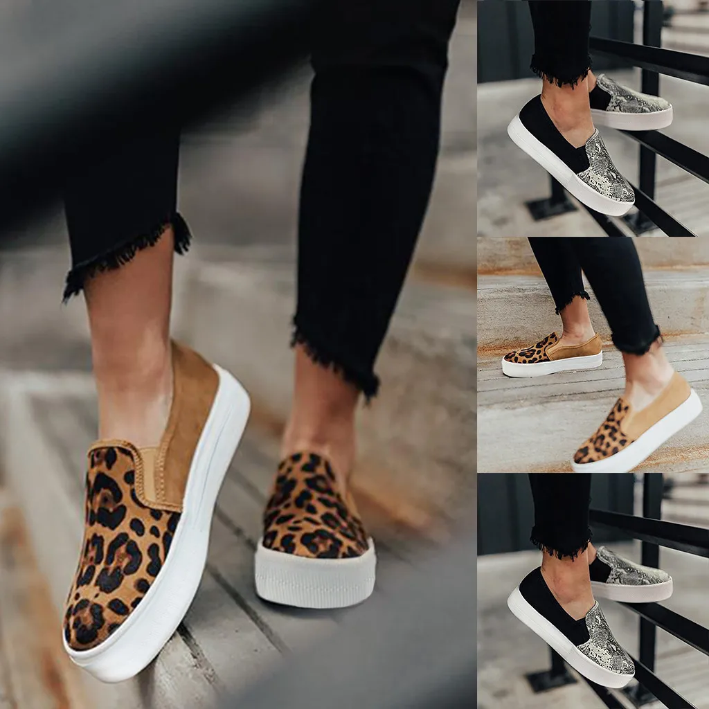 Женские Модные леопардовые повседневные лоферы; Тканевая парусиновая обувь в римском стиле