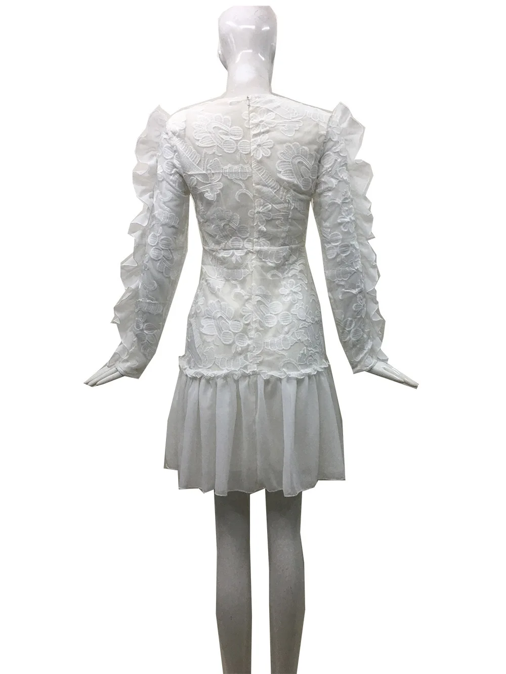 Платье женское кружевное с v образным вырезом и рукавами фонариками|Женские