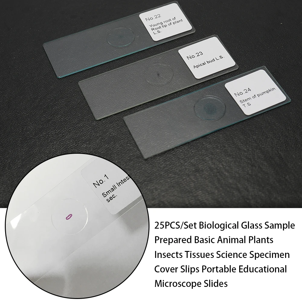 25 готовых слайдов, включая растения, насекомые и ткани животных. Изысканные образцы выбираются из различных категорий. Подходит для использования в биологическом обучении. Отличительный подарок для детей!