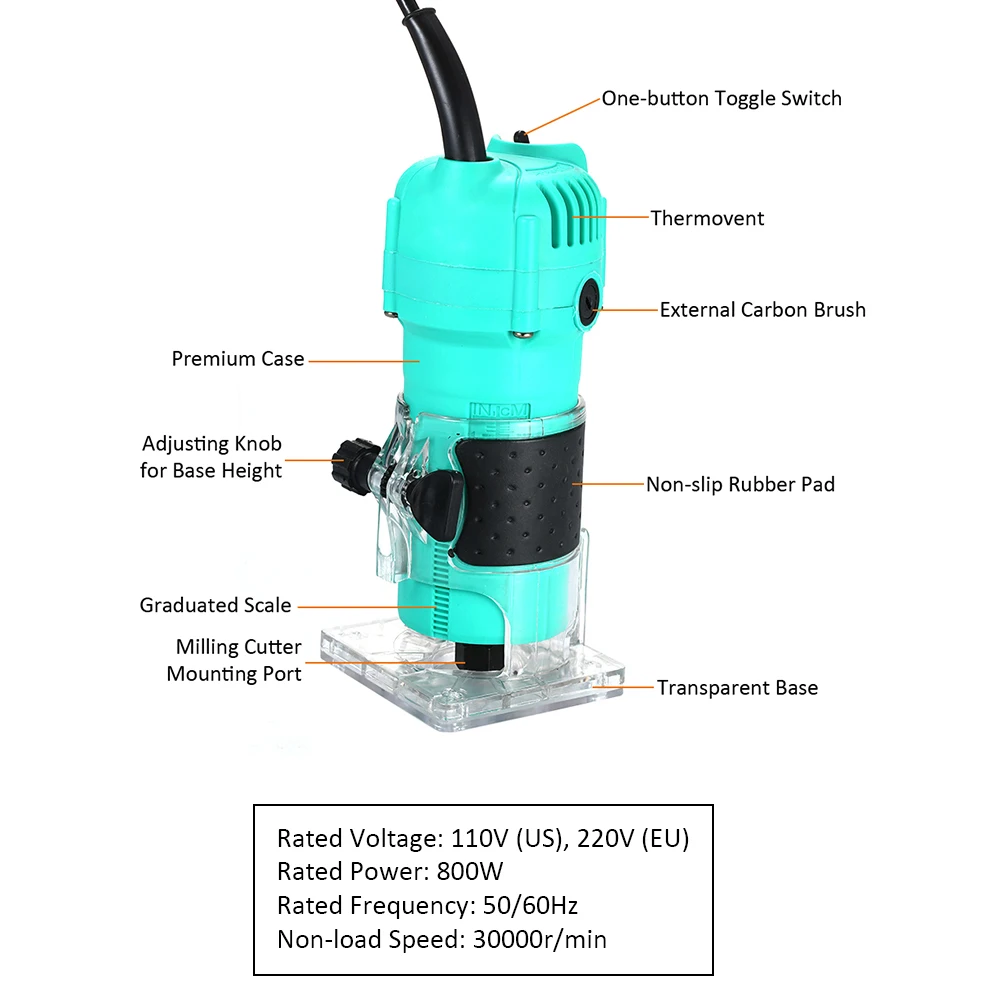 Этот маршрутизатор используется для семейств и отраслей промышленности. Полностью Медный двигатель, мощный, легкий корпус делает его идеальным деревообрабатывающим инструментом.