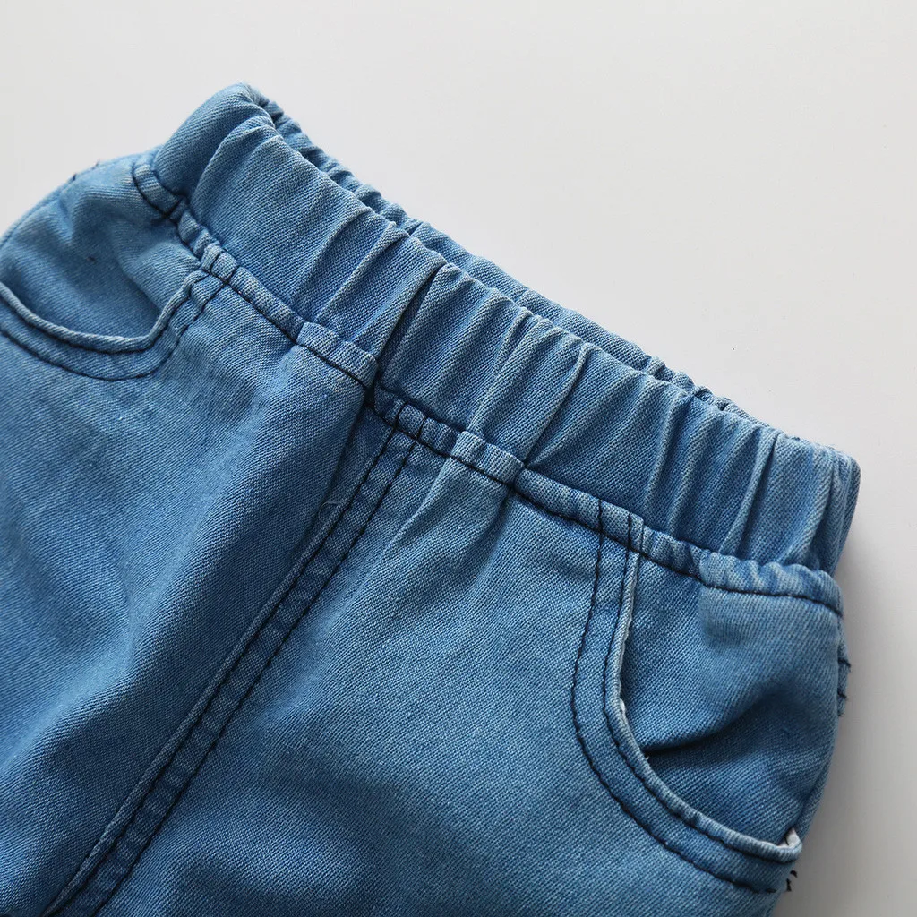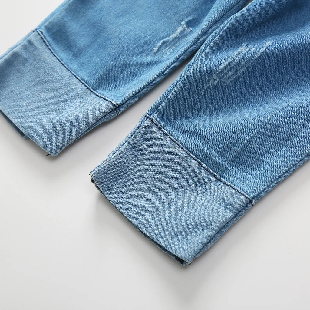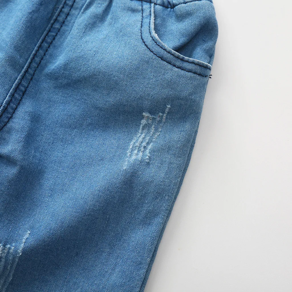Топ с открытыми плечами и кружевом для маленьких девочек + джинсовые штаны; Комплект одежды